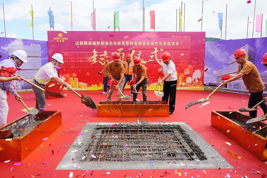 ????廣州達(dá)意隆包裝機械股份有限公司董事長張頌明、副董事長陳鋼攜公司高層領(lǐng)導(dǎo),與廣州市黃埔建筑工程總公司負(fù)責(zé)人梁亞林、廣州市南粵工程建設(shè)監(jiān)理有限公司負(fù)責(zé)人牛文雙、奧華建筑設(shè)計(廣東)有限公司負(fù)責(zé)人莊永烈等嘉賓齊聚現(xiàn)場,共同見證這一重要時刻。
