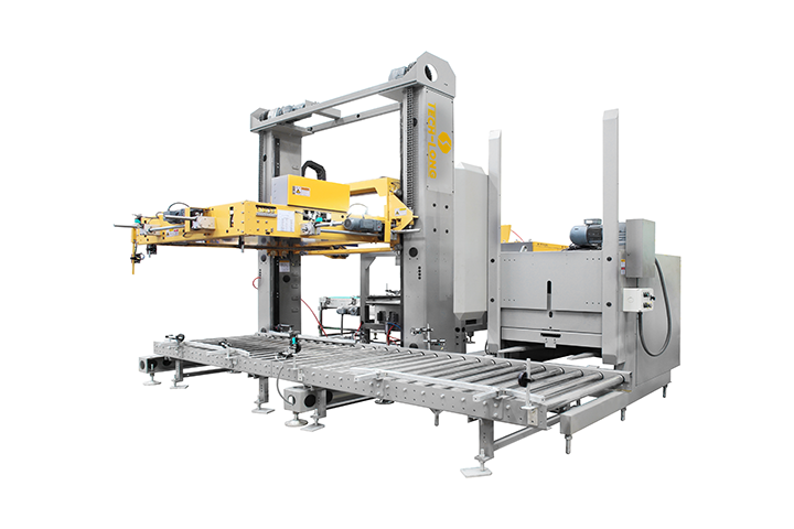 傳統(tǒng)碼垛機有低位低碼,低位高碼,高位高碼,對于不同的產能,不同的需求可采用不同的碼垛機配置。